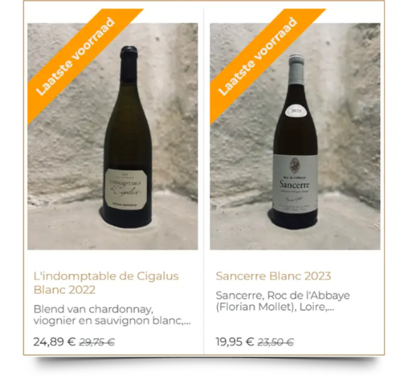 Geniet van onze exclusieve wijnselectie met deze mooie aanbiedingen!Om ons assortiment spannend en verrassend te houden, bieden we nu een aantal bijzondere wijnen aan tegen een onweerstaanbare prijs. Let op: op = op!