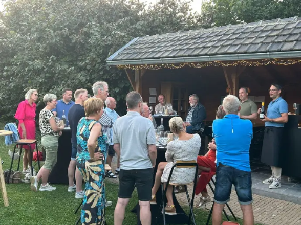 Op 4 juli mochten we een wijnproeverij voor Buurtvereniging de Maasheuvel verzorgen. De kapschuur in de tuin van Hugo en Suzanne was de perfecte locatie voor de 20 deelnemers. In totaal zes wijnen verdeeld over drie rondes werden gepresenteerd en geproefd. In elke ronde twee mooie wijnen tegenover elkaar, vergezeld van een klein hapje om de verschillende wijn / spijs combinaties te ervaren. Aansluitend was er nog een wijnbar en werd er nog gezellig nagepraat tot in de vroege uurtjes.